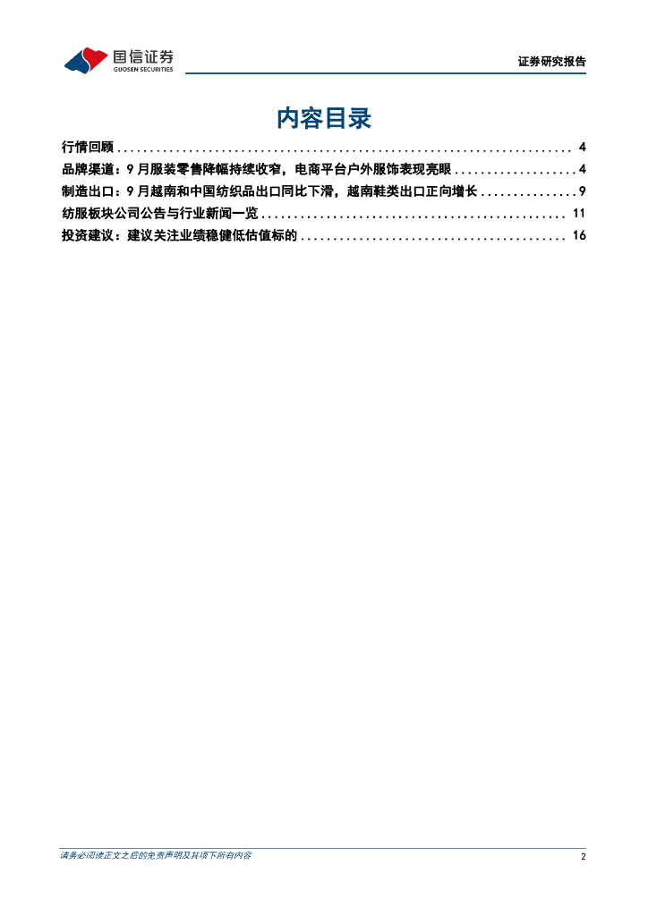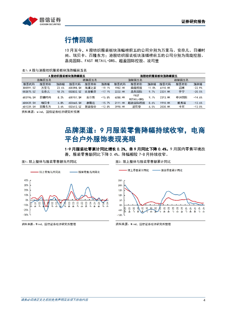 国信证券:纺织服装行业双周报(2410期):9月服装社零降幅收窄,关注业绩稳健低估值标的.pdf