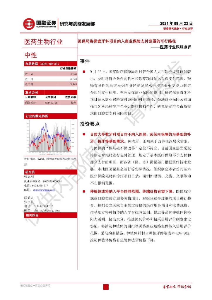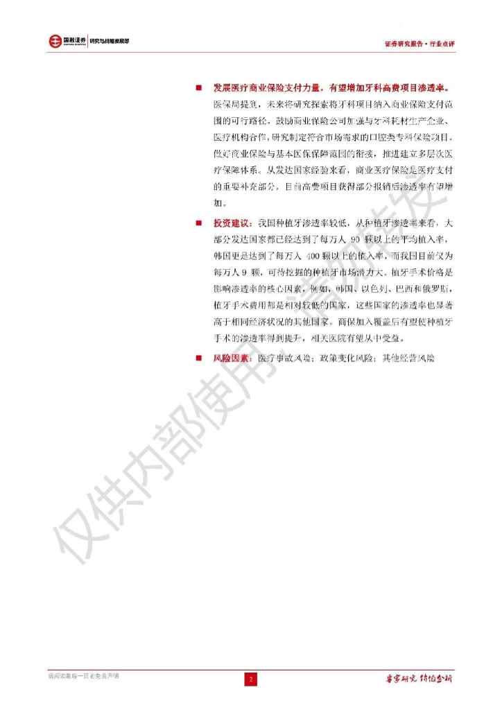 国融证券:医药行业跟踪点评:医保局将探索牙科项目纳入商业保险支付范围的可行路径.pdf
