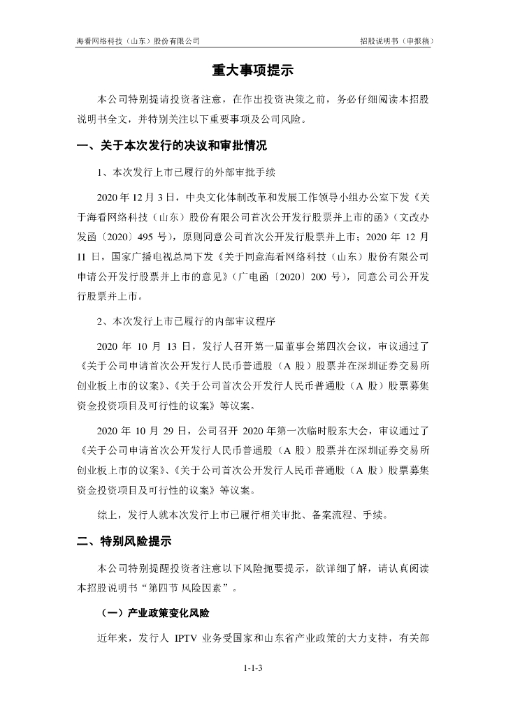 海看网络科技(山东)股份有限公司深交所创业板IPO上市招股说明书.pdf