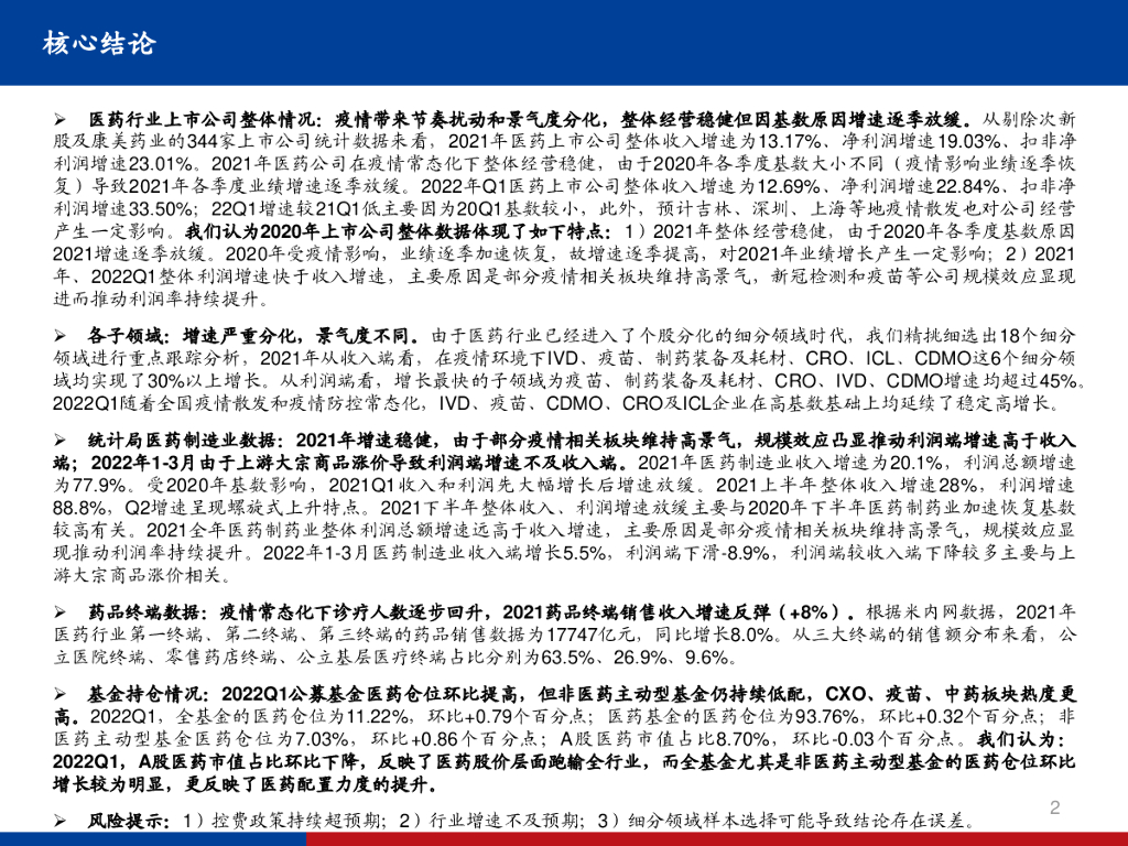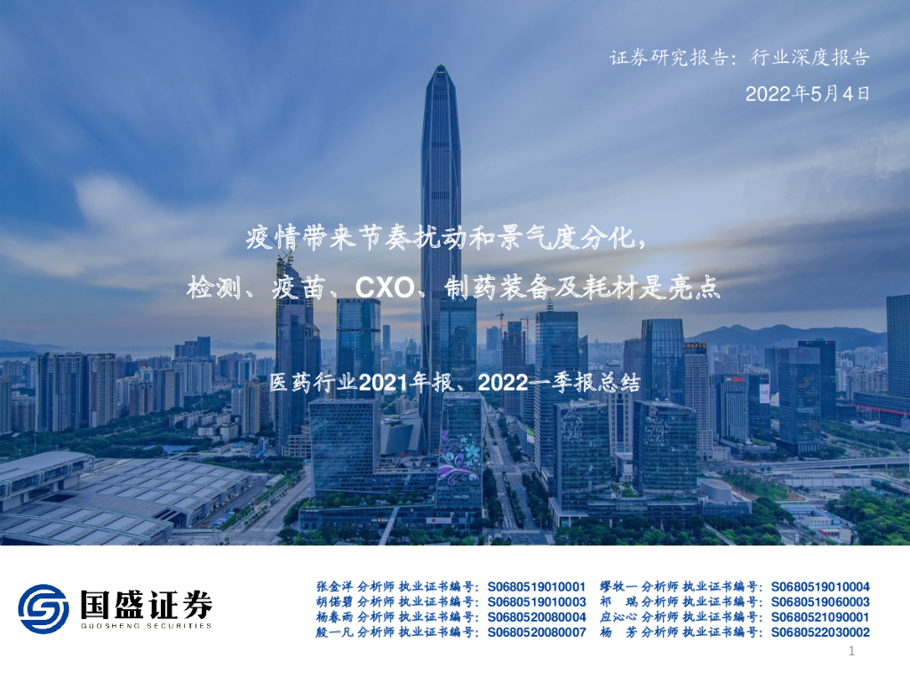 国盛证券:医药行业2021年报、2022一季报总结:疫情带来节奏扰动和景气度分化,检测、疫苗、CXO、制药装备及耗材是亮点.pdf