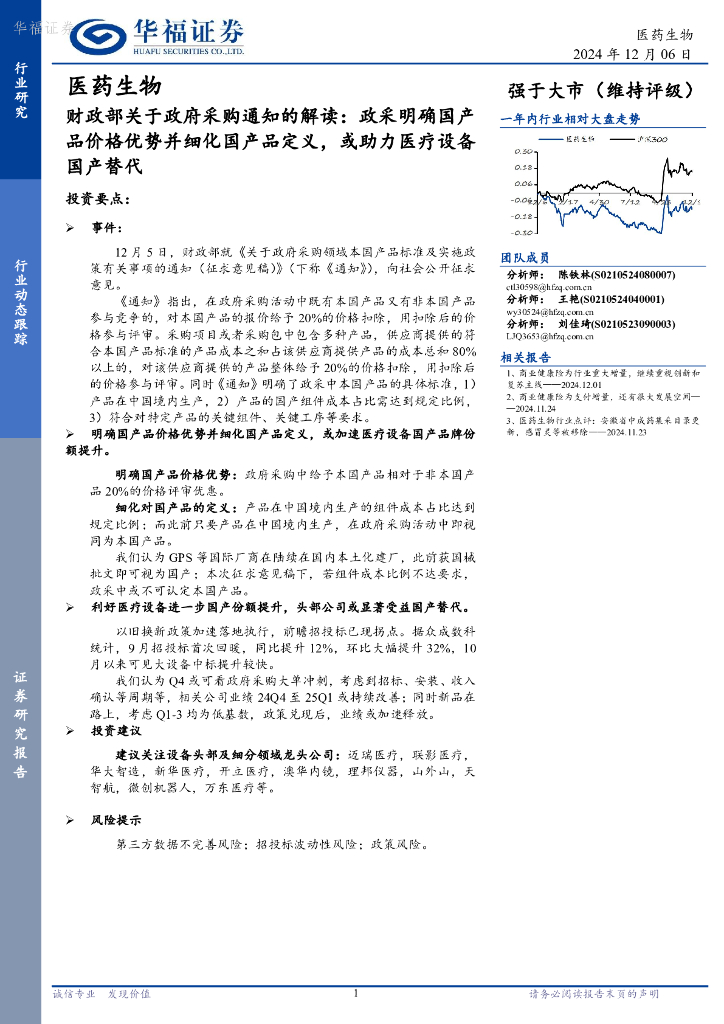 华福证券:医药生物:财政部关于政府采购通知的解读:政采明确国产品价格优势并细化国产品定义,或助力医疗设备国产替代.pdf