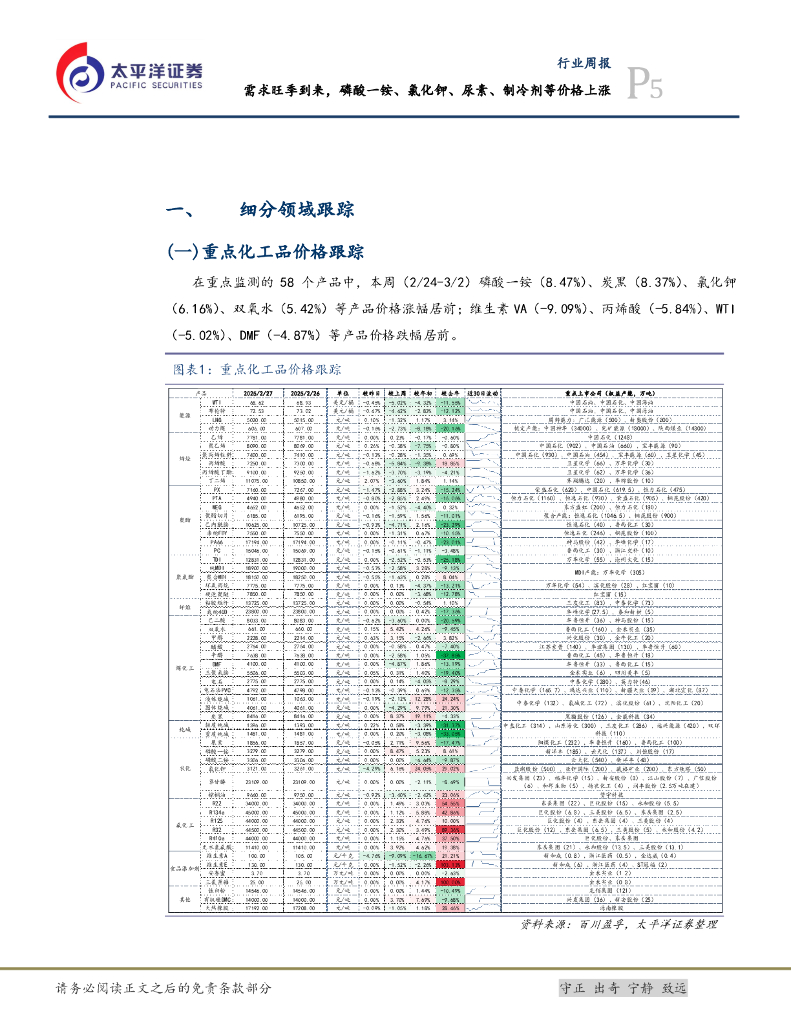 太平洋证券:化工行业周报:需求旺季到来,磷酸一铵、氯化钾、尿素、制冷剂等价格上涨.pdf