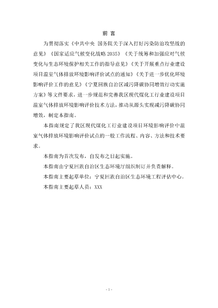 宁夏回族自治区现代煤化工行业建设项目温室气体排放环境影响评价技术指南(试行)(征求意见稿).pdf