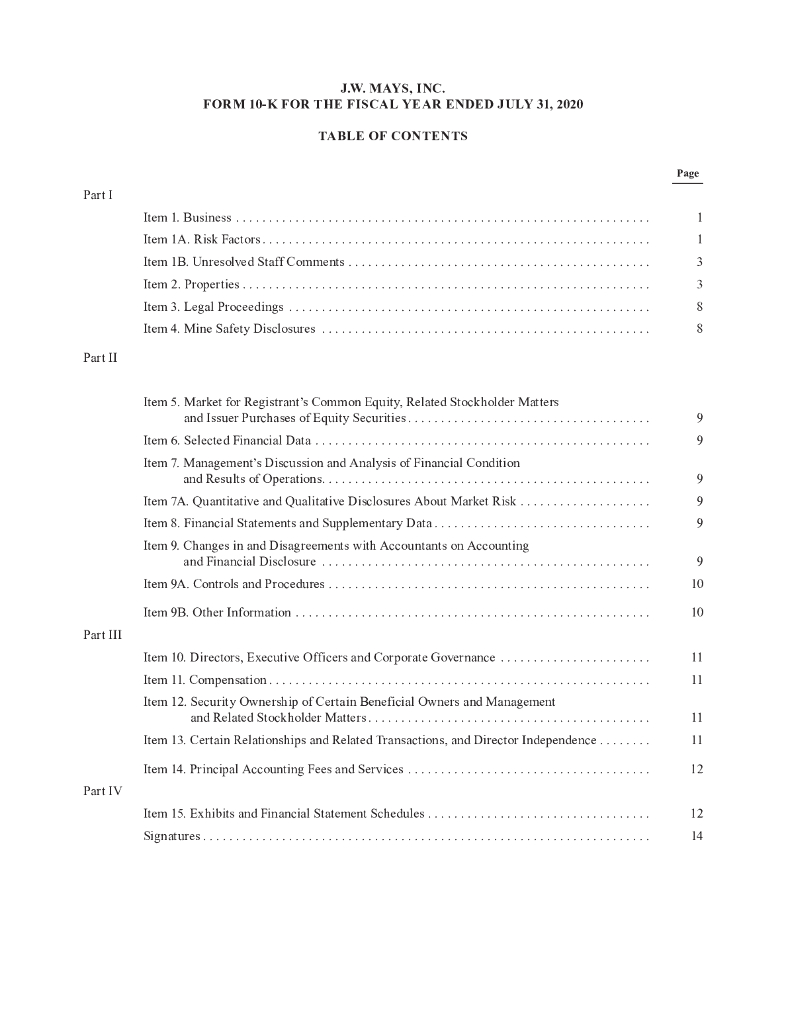 J. W. Mays, Inc.(MAYS)2020财年年度报告(英文版).pdf
