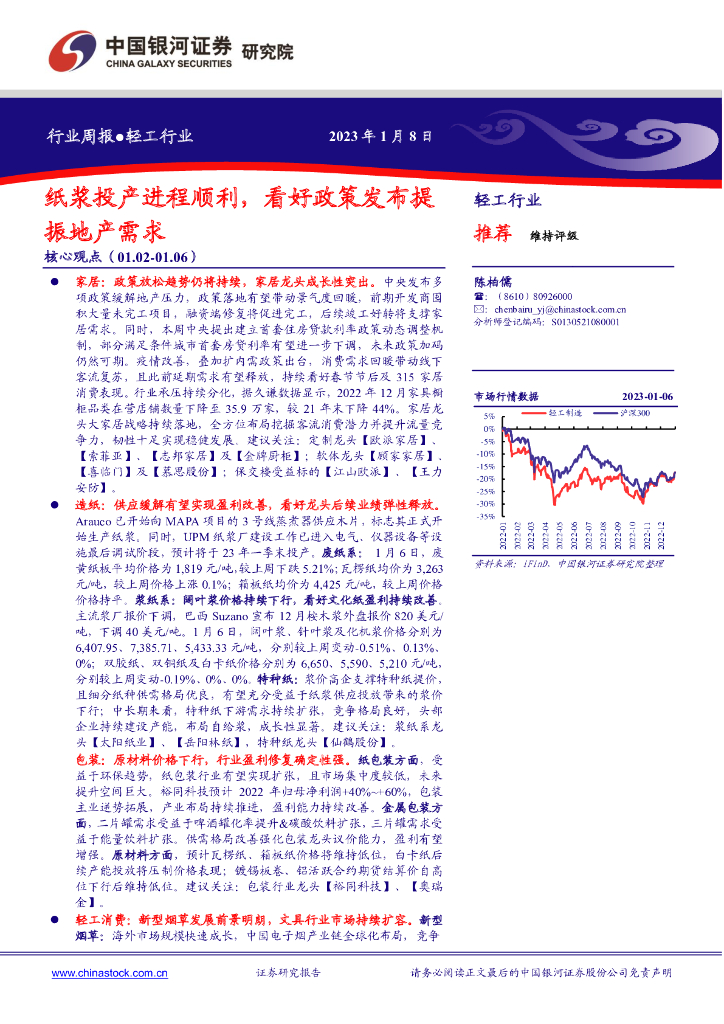 中国银河:轻工行业周报:纸浆投产进程顺利,看好政策发布提振地产需求.pdf
