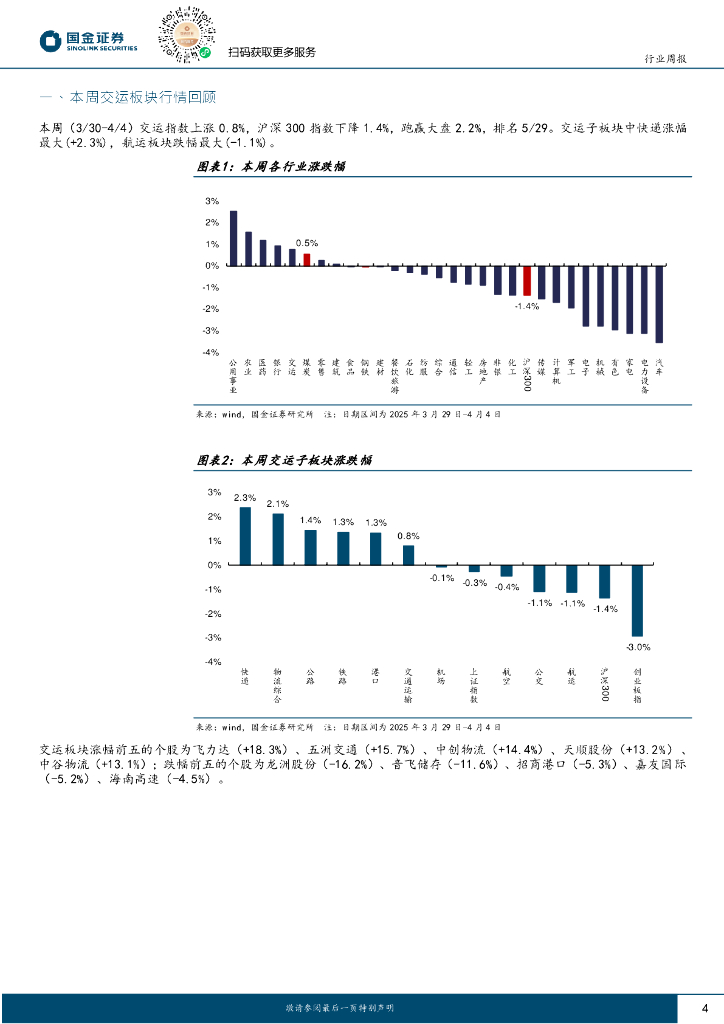 国金证券:交通运输产业行业周报:美国加征关税影响物流,国际油价环比大跌利好航空.pdf