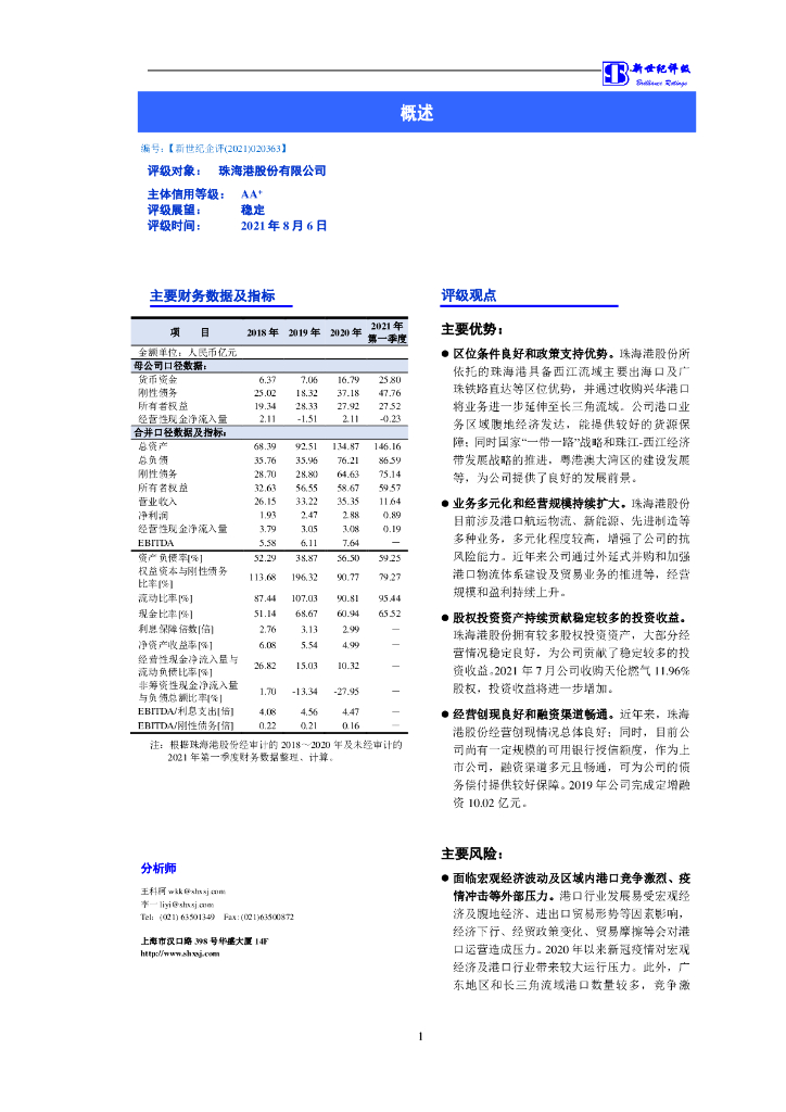 新世纪:珠海港股份限公司主体信用评级报告.pdf