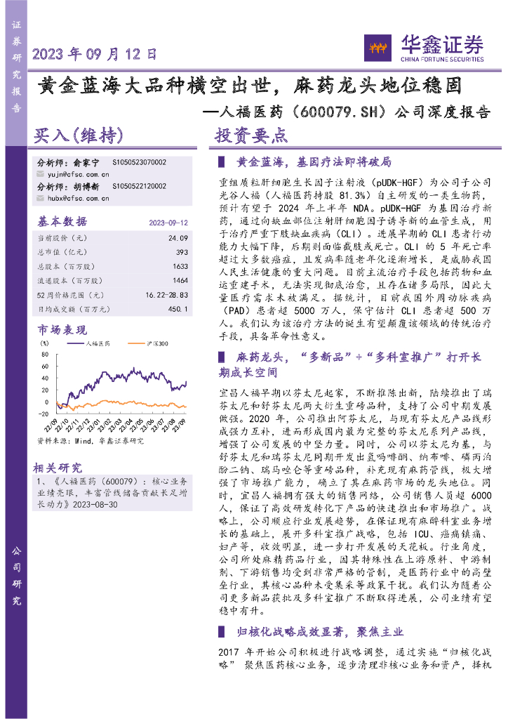 华鑫证券:人福医药(600079)-公司深度报告:黄金蓝海大品种横空出世,麻药龙头地位稳固.pdf