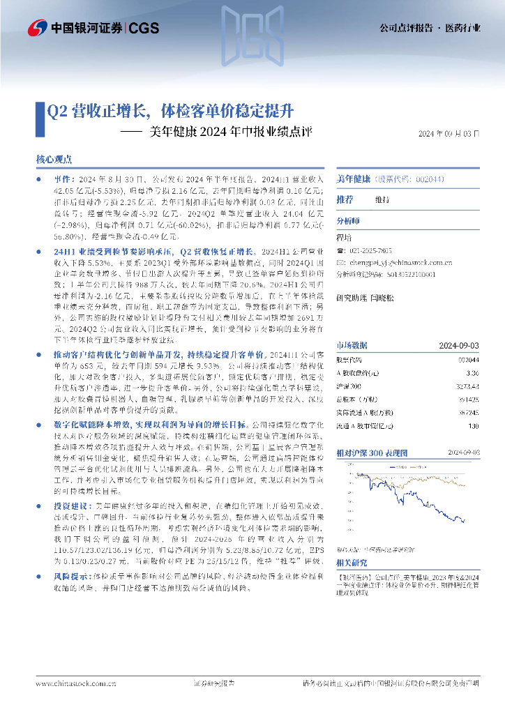 中国银河:美年健康2024年中报业绩点评:Q2营收正增长,体检客单价稳定提升.pdf