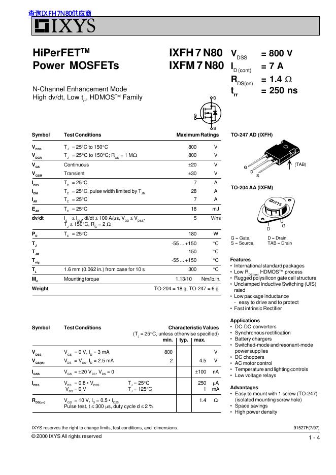 IXYS IXFH 7 N80 / IXFM 7 N80 数据手册.pdf