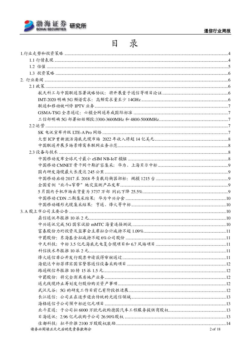 渤海证券:通信行业周报:关注通信板块中5G与军工相关个股.pdf