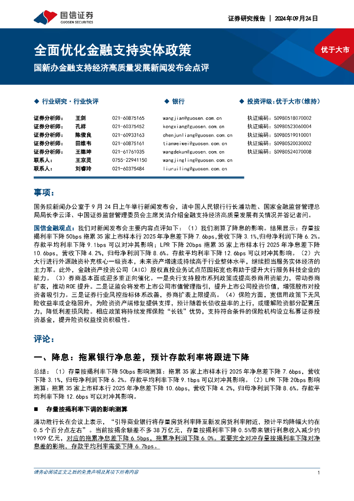 国信证券:银行:国新办金融支持经济高质量发展新闻发布会点评-全面优化金融支持实体政策.pdf