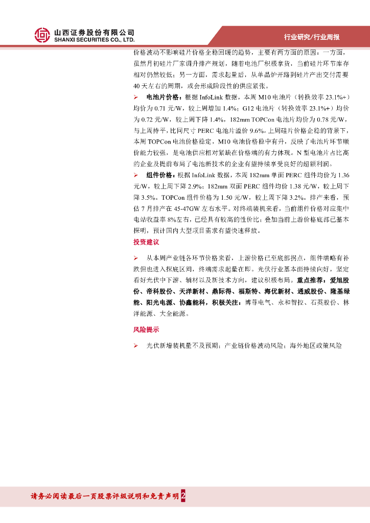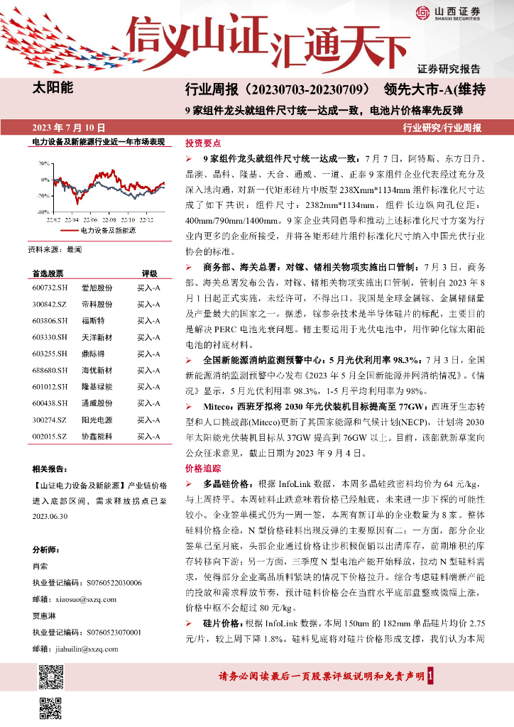 山西证券:太阳能行业周报:9家组件龙头就组件尺寸统一达成一致,电池片价格率先反弹.pdf
