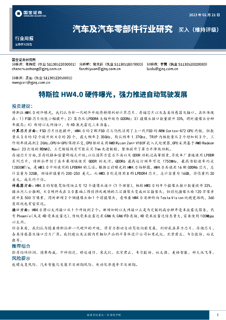 国金证券:汽车及汽车零部件行业研究:特斯拉HW4.0硬件曝光,强力推进自动驾驶发展.pdf