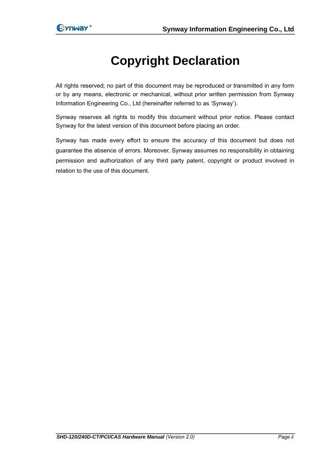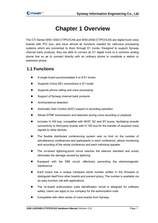 Synway CTI系列SHD-120D-CT/PCI/CAS SHD-240D-CT/PCI/CAS数字中继板硬件手册.pdf