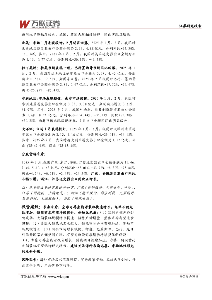 万联证券:电力设备行业跟踪报告:逆变器出口:新兴市场表现稳健,亚洲市场同比高增长.pdf