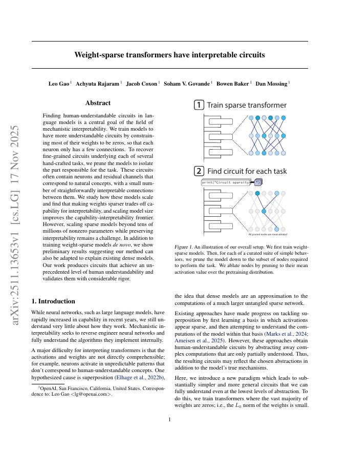 OpenAI:权重稀疏的变压器具有可解释的电路(英文版).pdf