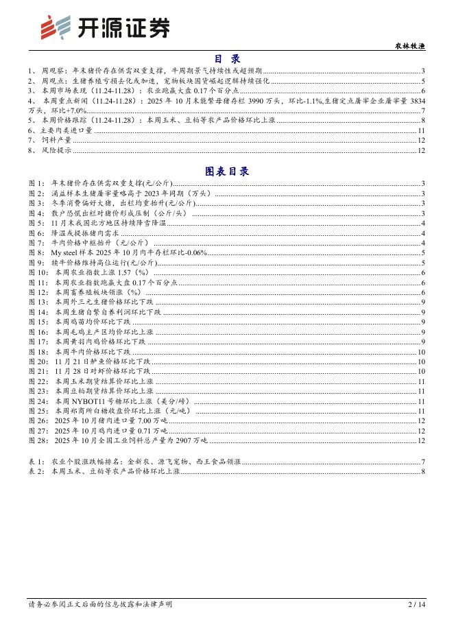 开源证券:农林牧渔行业周报:年末猪价存在供需双重支撑,牛周期景气持续性或超预期.pdf
