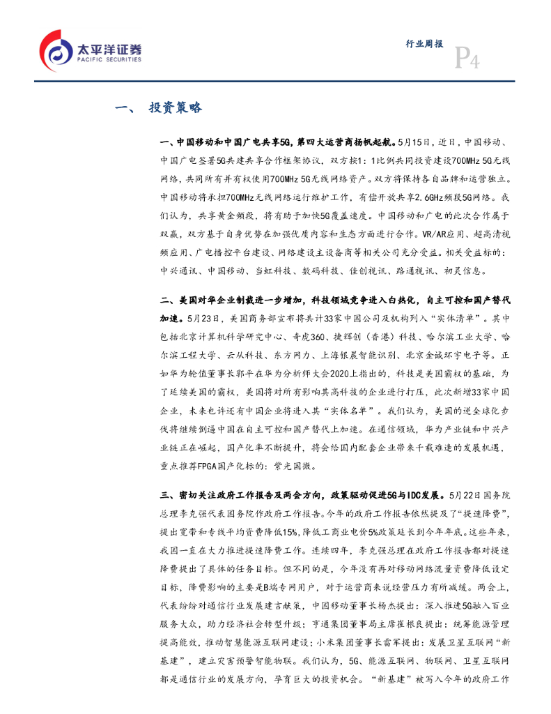 太平洋证券:通信行业周报:中移动与广电共享5G,关注政府工作报告及两会政策方向.pdf