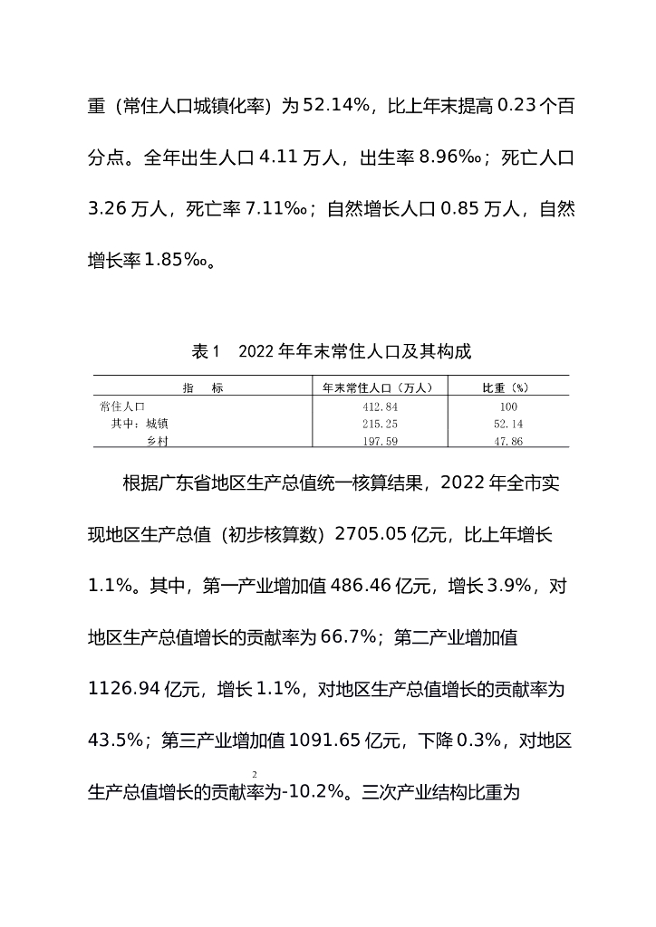 肇庆市2022年国民经济和社会发展统计公报.doc