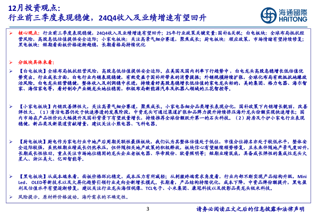 海通国际:家电行业:行业前三季度表现稳健,24Q4收入及业绩增速有望回升.pdf