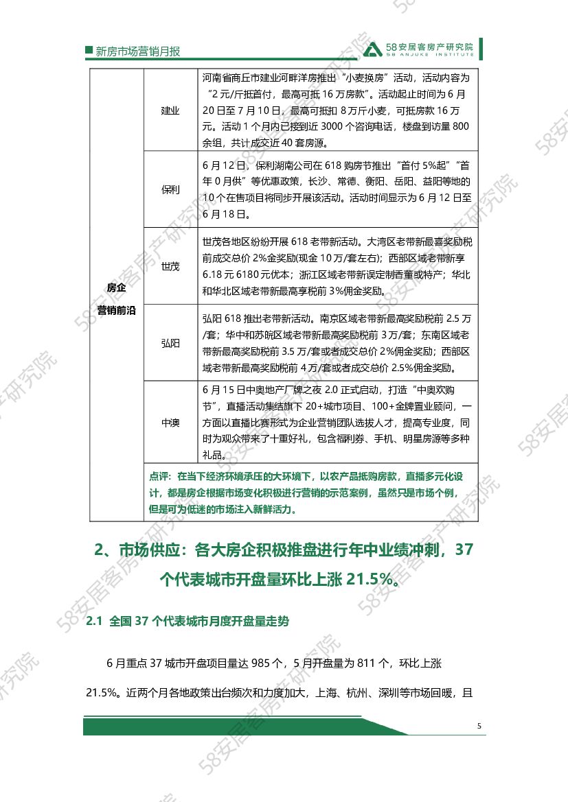 58安居客房产研究院:2022年6月全国新房市场营销月报.pdf