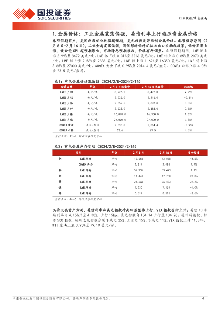 国投证券:有色金属行业快报:2024年春节假期有色金属市场回顾.pdf