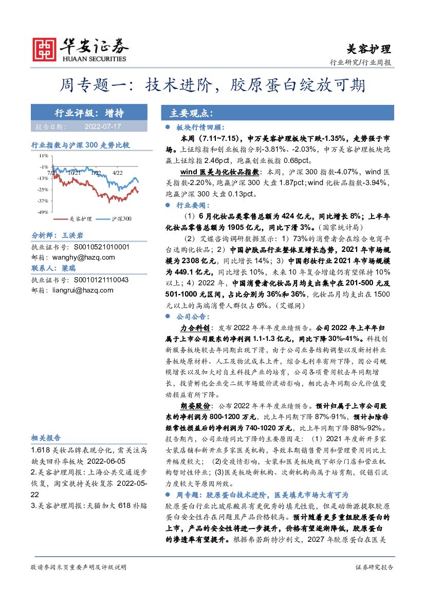 华安证券:美容护理周专题一:技术进阶,胶原蛋白绽放可期.pdf