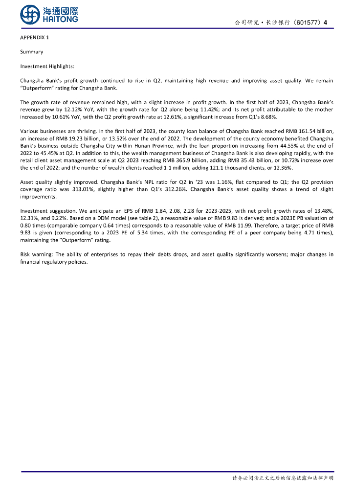 海通国际:长沙银行2023中报点评:营收利润增速保持高位,资产质量小幅改善.pdf