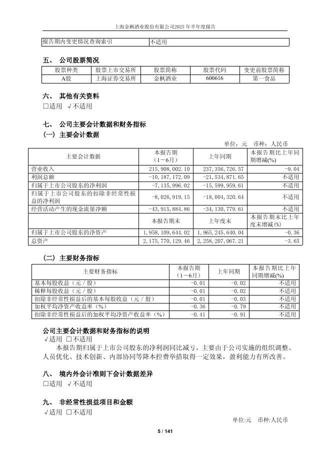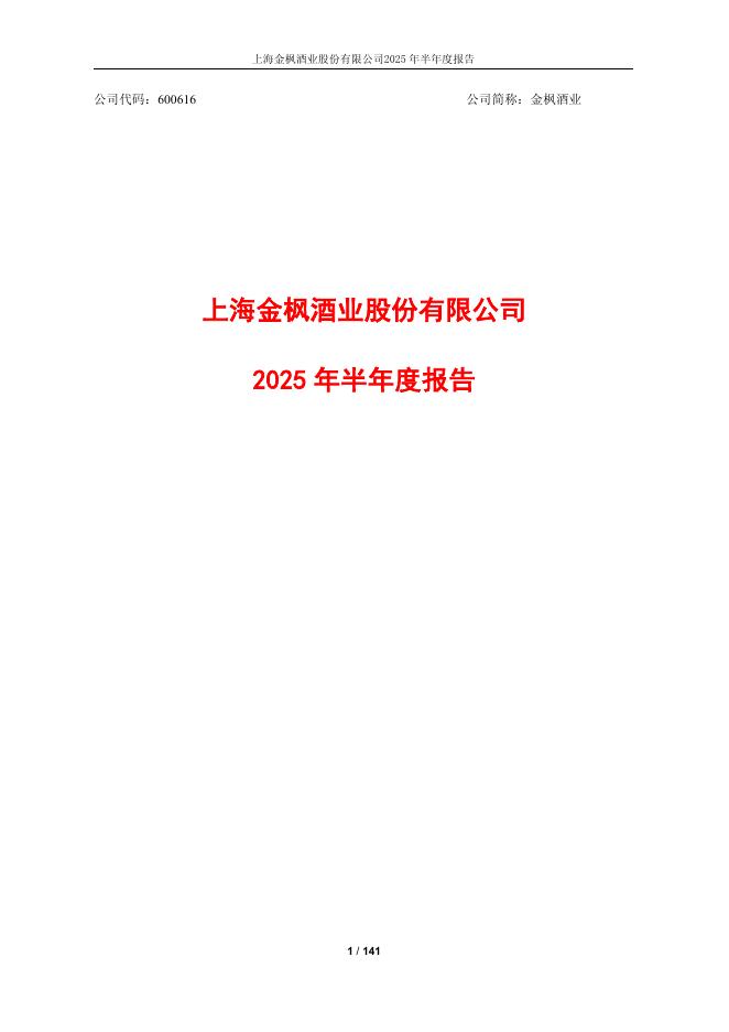 600616-金枫酒业:金枫酒业2025年半年报全文.pdf