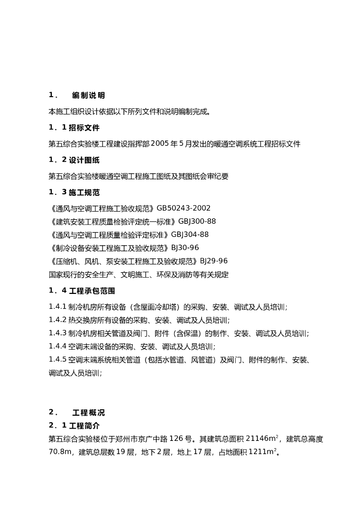 第五综合实验楼暖通空调工程施工组织设计(Word.69页).doc