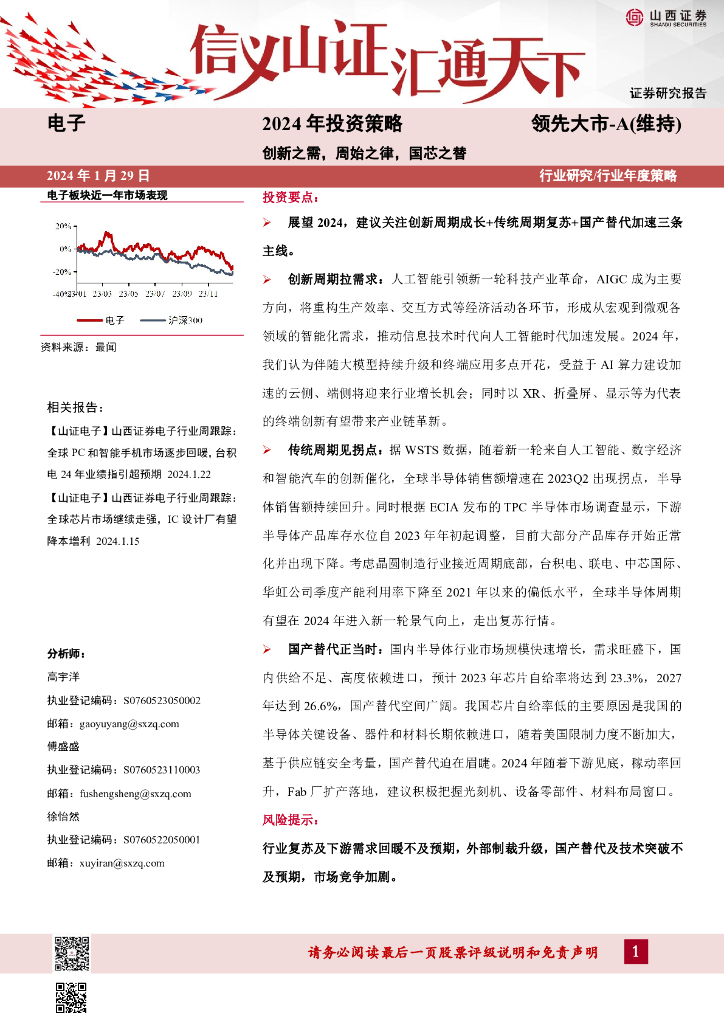山西证券:电子2024年投资策略:创新之需,周始之律,国芯之替.pdf