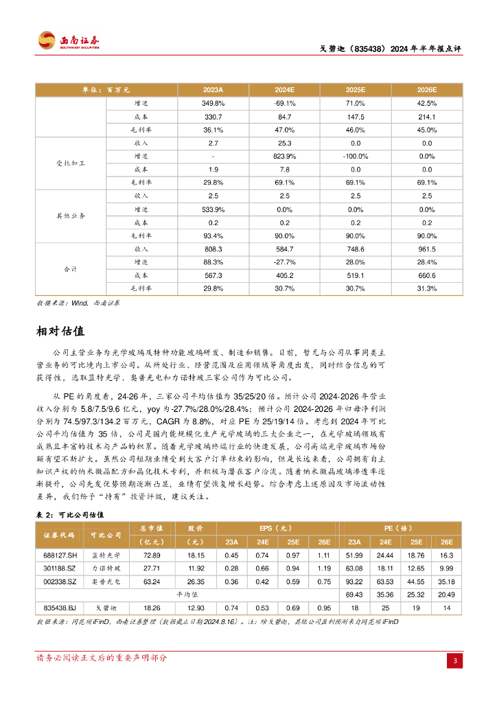 西南证券:戈碧迦(835438)-2024年半年报点评:短期业绩有所承压,新客户开拓及技术研发持续推进.pdf