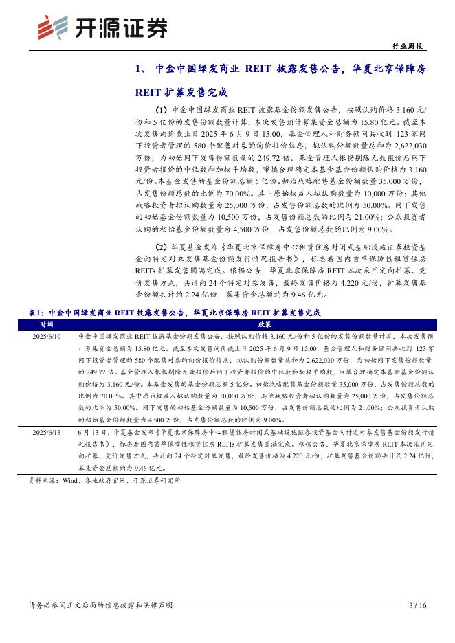 开源证券:REITs行业周报:华夏北京保障房REIT扩募发售完成,保障房REITs表现持续优异.pdf