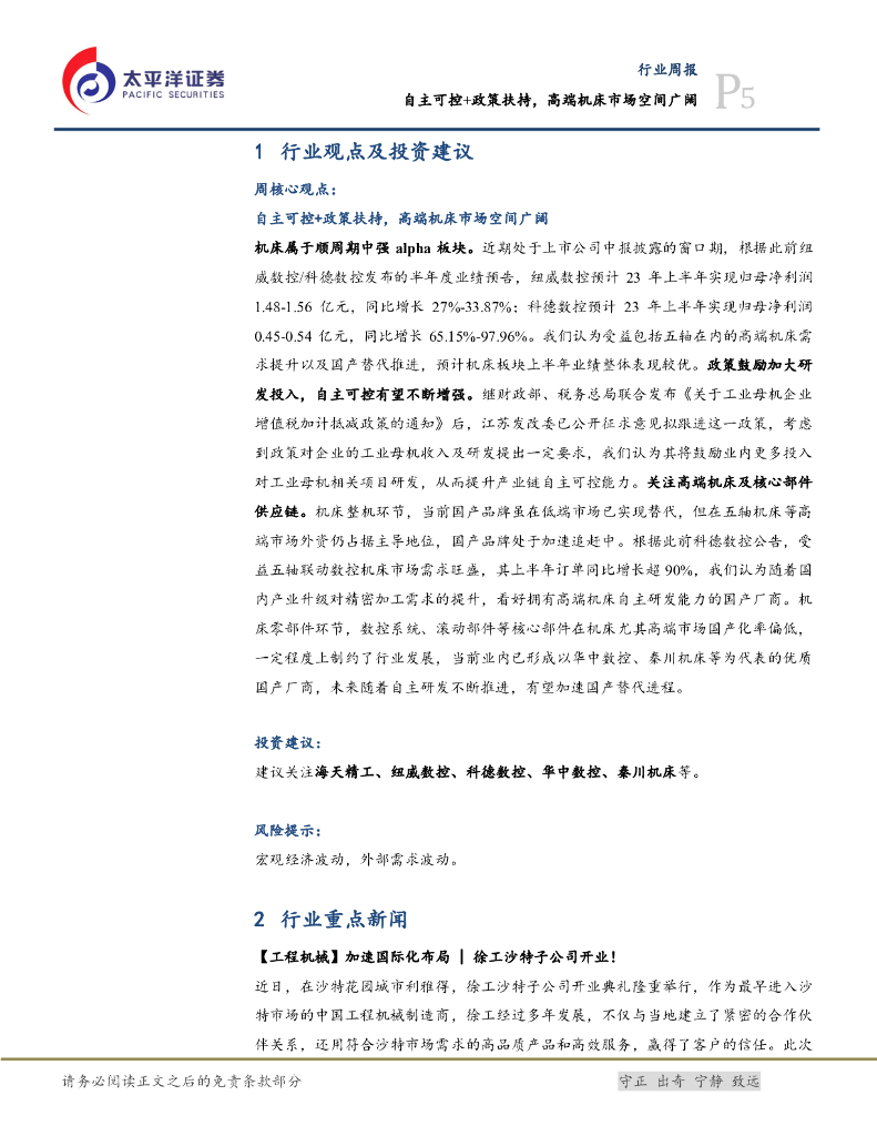 太平洋证券:机械设备行业周报:自主可控+政策扶持,高端机床市场空间广阔.pdf