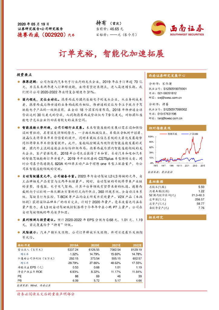 西南证券:德赛西威(002920)-订单充裕,智能化加速拓展.pdf
