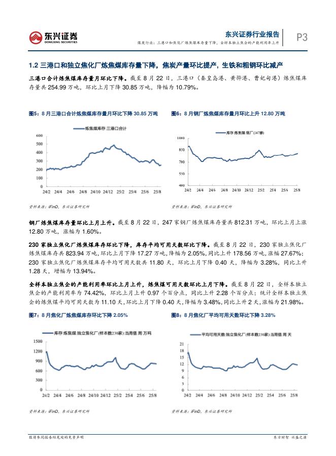 东兴证券:煤炭行业:三港口和焦化厂炼焦煤库存量下降,全样本独立焦企的产能利用率上升.pdf