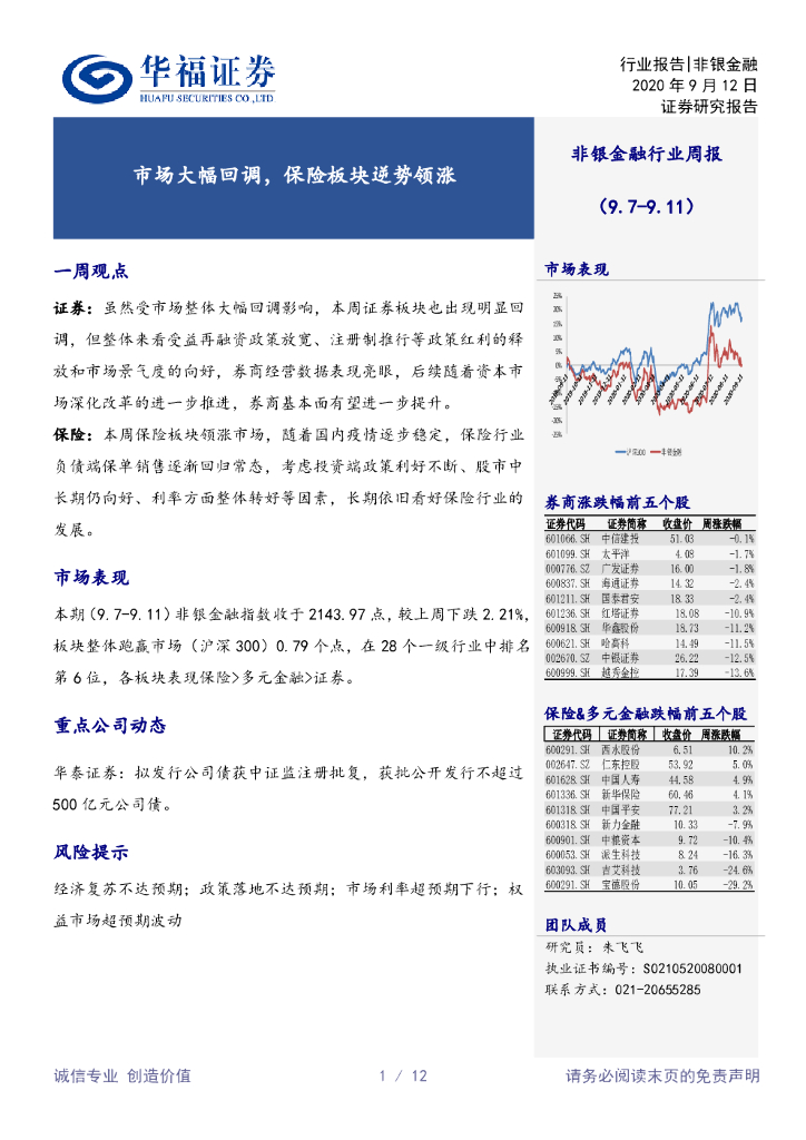 华福证券:非银金融行业周报:市场大幅回调, 保险板块逆势领涨.pdf