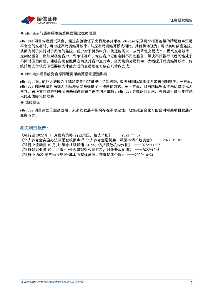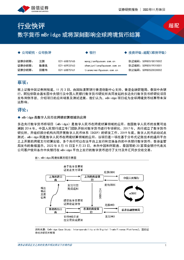 国信证券:银行行业快评:数字货币mBridge或将深刻影响全球跨境货币结算.pdf