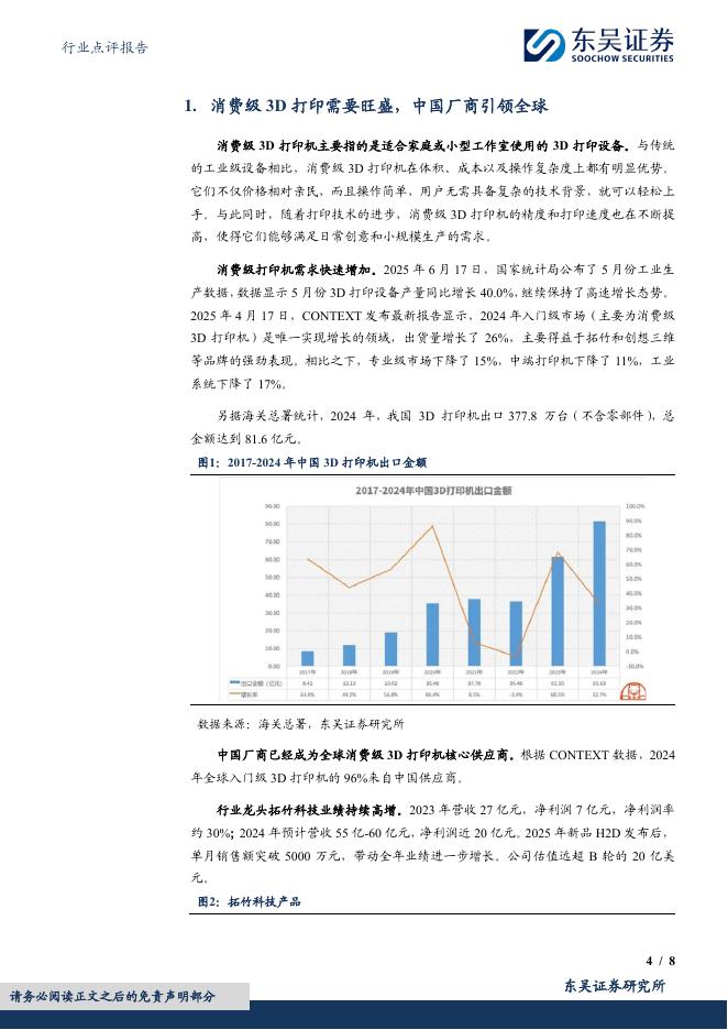 东吴证券:计算机行业点评报告:消费级3D打印迎来奇点时刻,关注产业投资机会.pdf