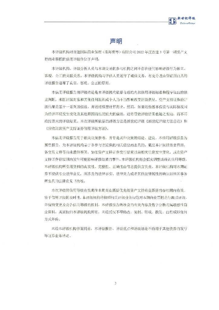 新世纪:晋建国际商业保理(珠海横琴)有限公司2022年度晋建3号第一期资产支持商业票据信用评级报告.pdf