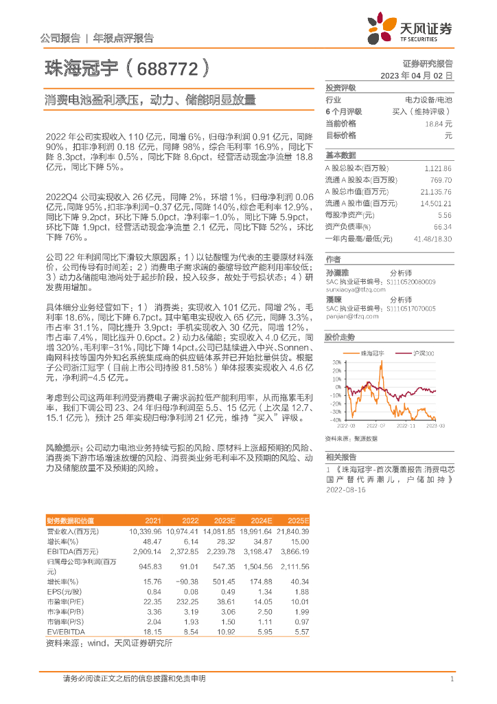 天风证券:珠海冠宇(688772)-消费电池盈利承压,动力、储能明显放量.pdf
