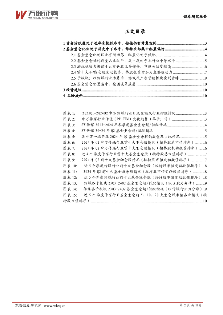 万联证券:传媒行业跟踪报告:基金重仓配置维持低配,游戏及广告营销板块受到市场关注.pdf