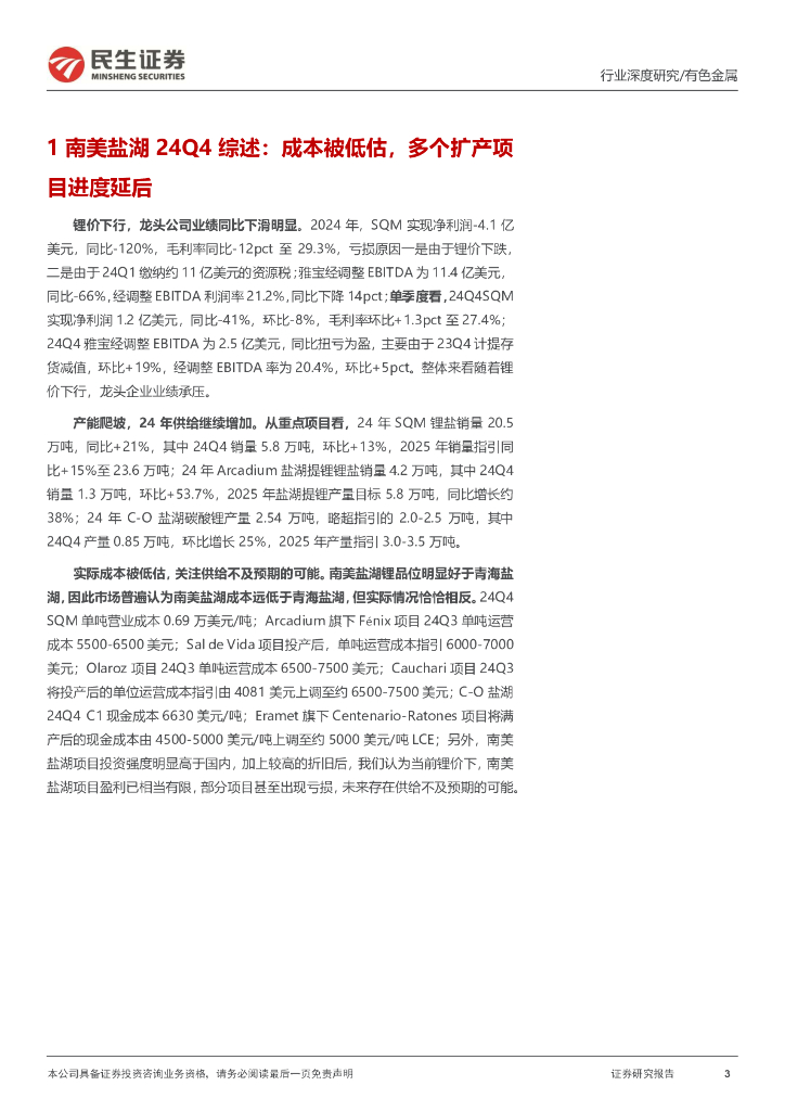 民生证券:真“锂”探寻系列15:南美盐湖24Q4跟踪:成本被低估,扩产进度放缓.pdf