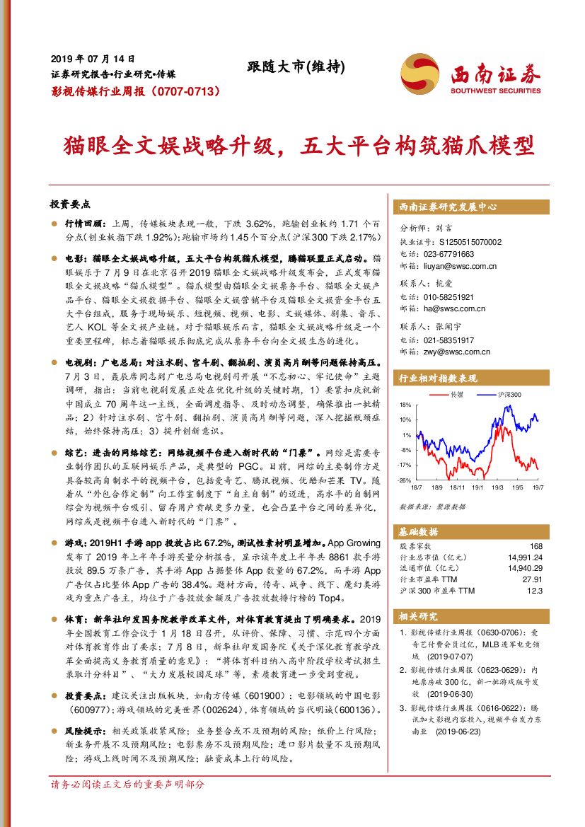 西南证券:影视传媒行业周报:猫眼全文娱战略升级,五大平台构筑猫爪模型.pdf