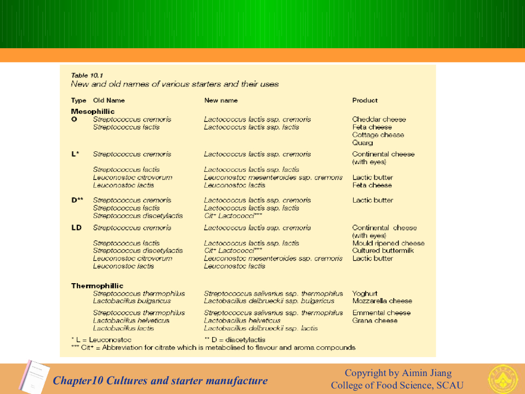 《畜产食品工艺学》教学课件-Cultures and starter manufacture(发酵剂与发酵乳制品).pdf