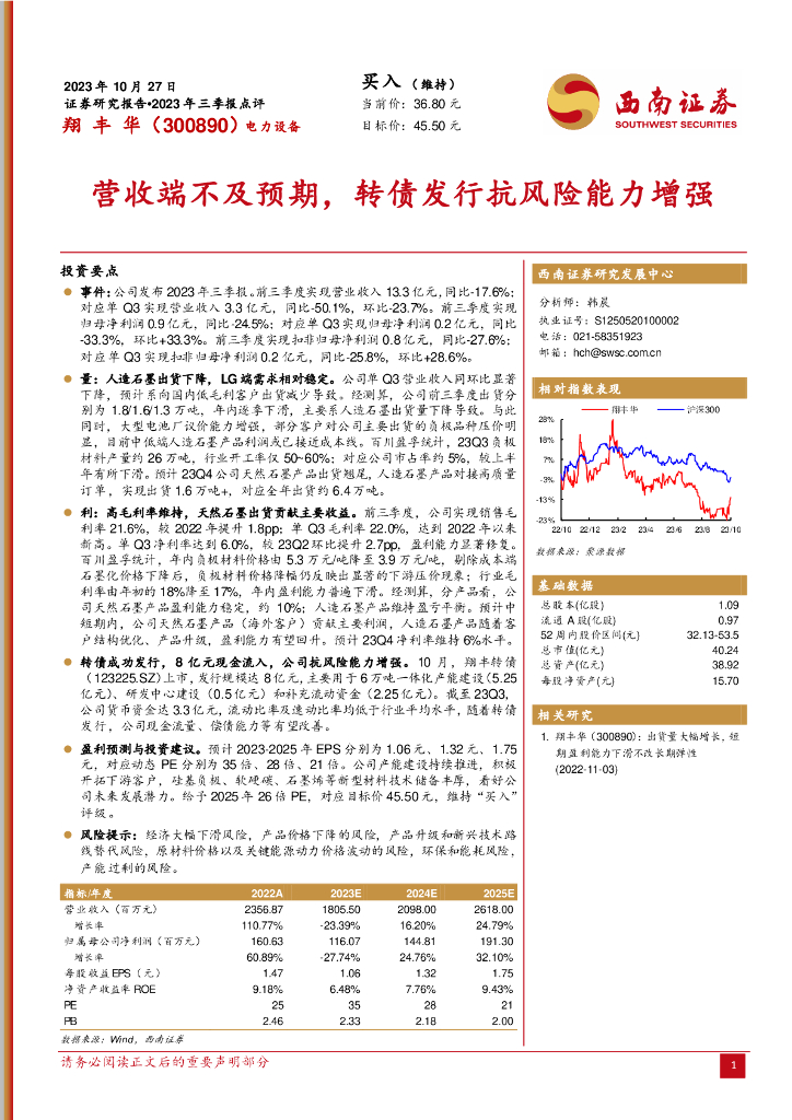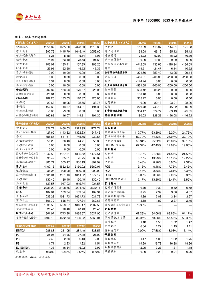 西南证券:翔丰华(300890)-2023年三季报点评:营收端不及预期,转债发行抗风险能力增强.pdf