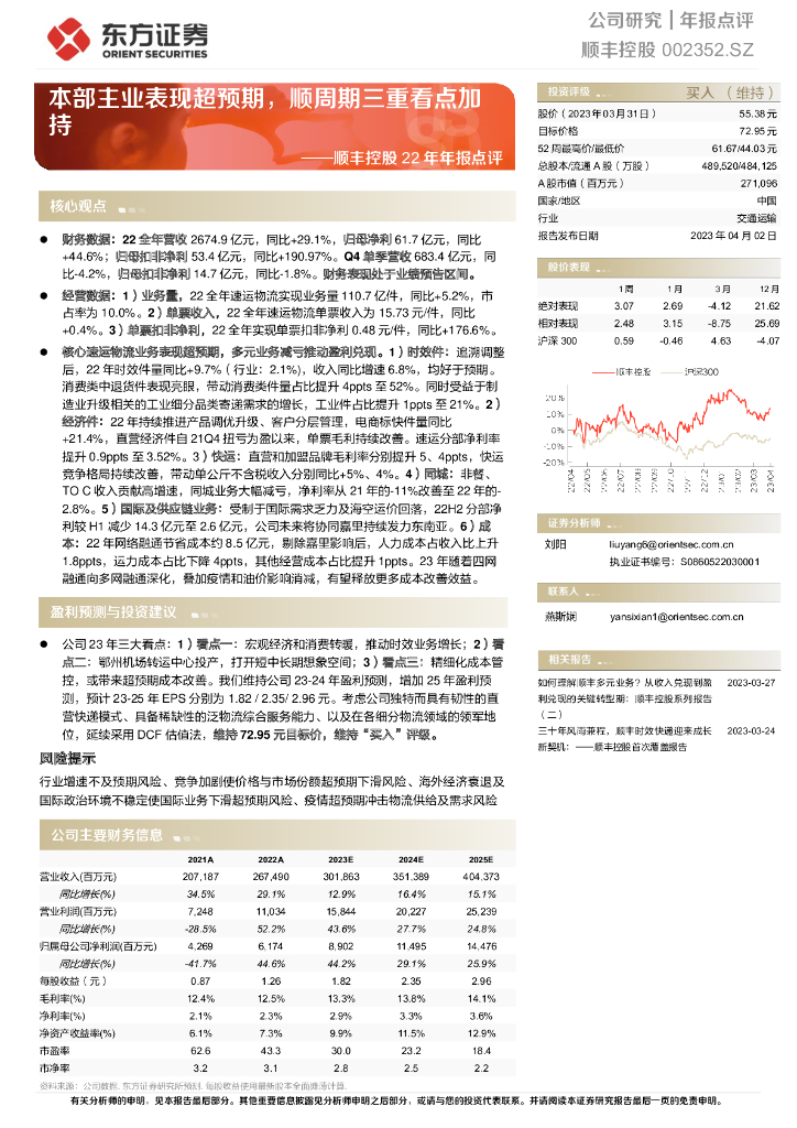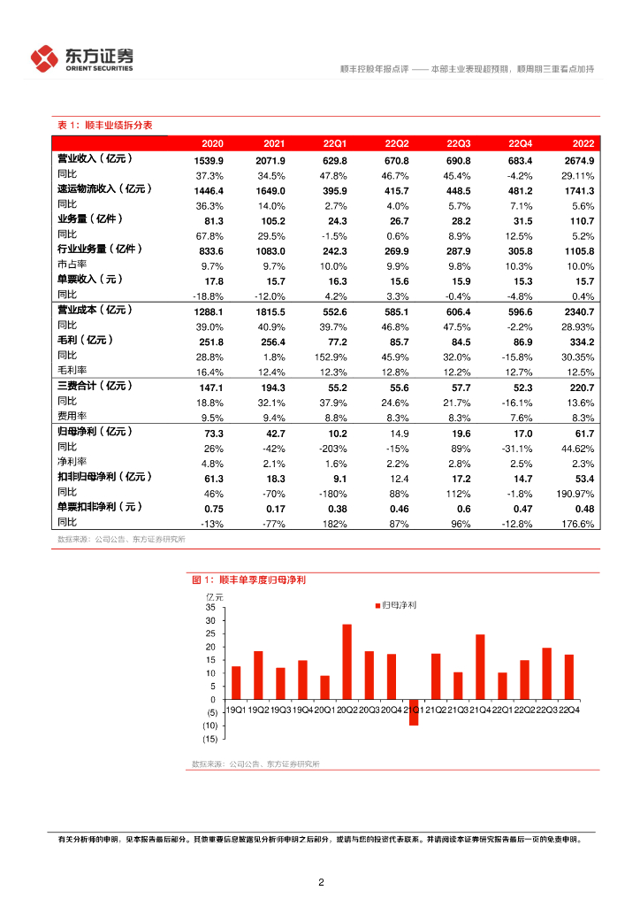 东方证券:顺丰控股22年年报点评:本部主业表现超预期,顺周期三重看点加持.pdf