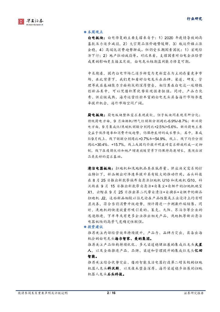 华安证券:9月家电零售数据跟踪:白电零售环比改善,集成灶、扫地机高端化趋势明显.pdf