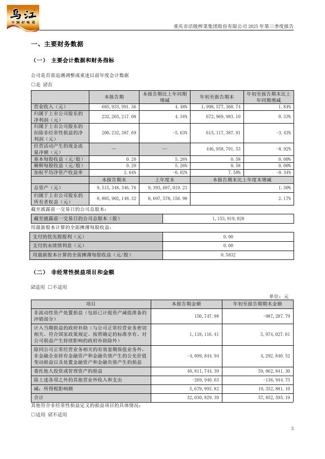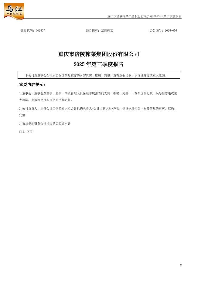 002507-涪陵榨菜:2025年三季度报告.pdf